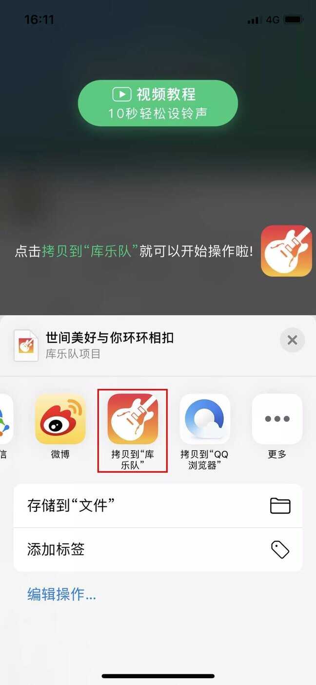 3、选择【拷贝到库乐队】,然后手机就会自动跳转到库乐队;