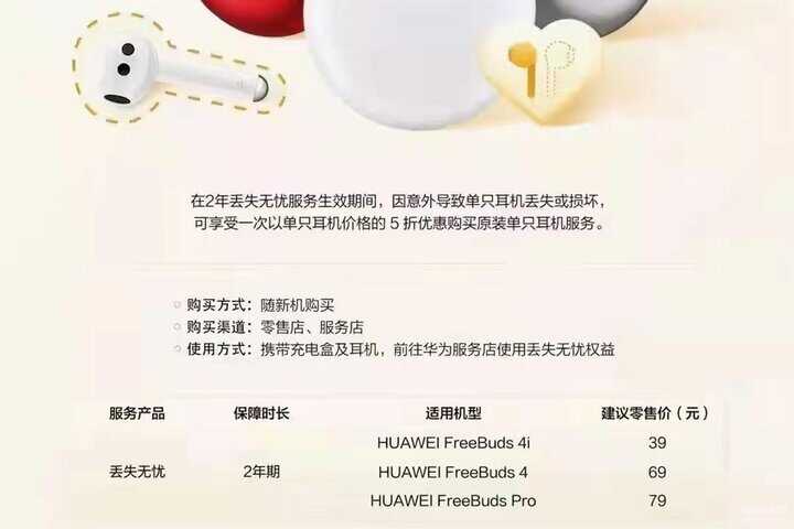 不过丢失无忧服务并不支持网上使用,所以一旦出现了丢失现象,还是需要带着充电盒以及耳机去附近的华为服务店,之后就可以半价把耳机配回来了。