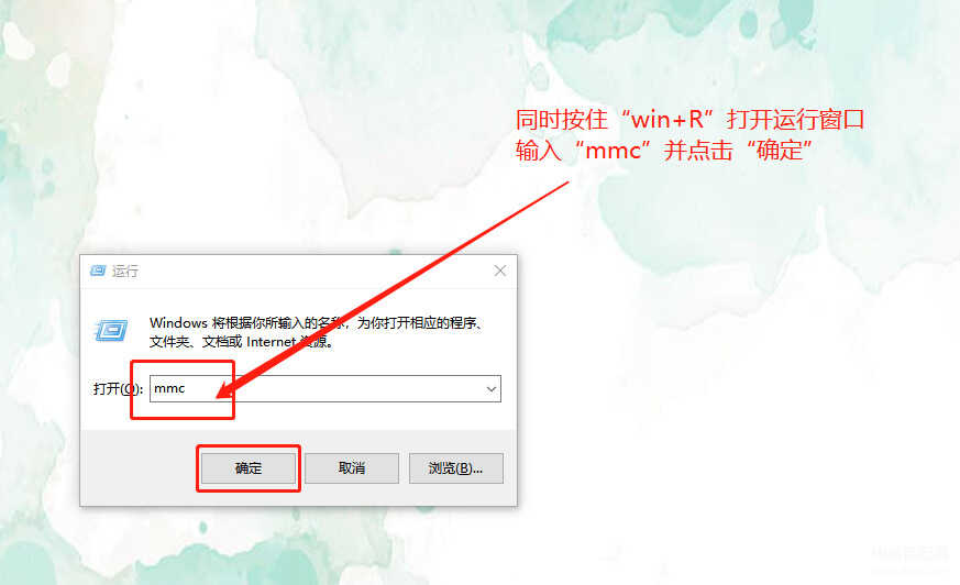 1、按 Win + R 组合键,打开运行,并输入:mmc 命令,确定或回车,打开控制台窗口