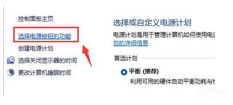 2、之后点击“选择电源键按钮功能”。