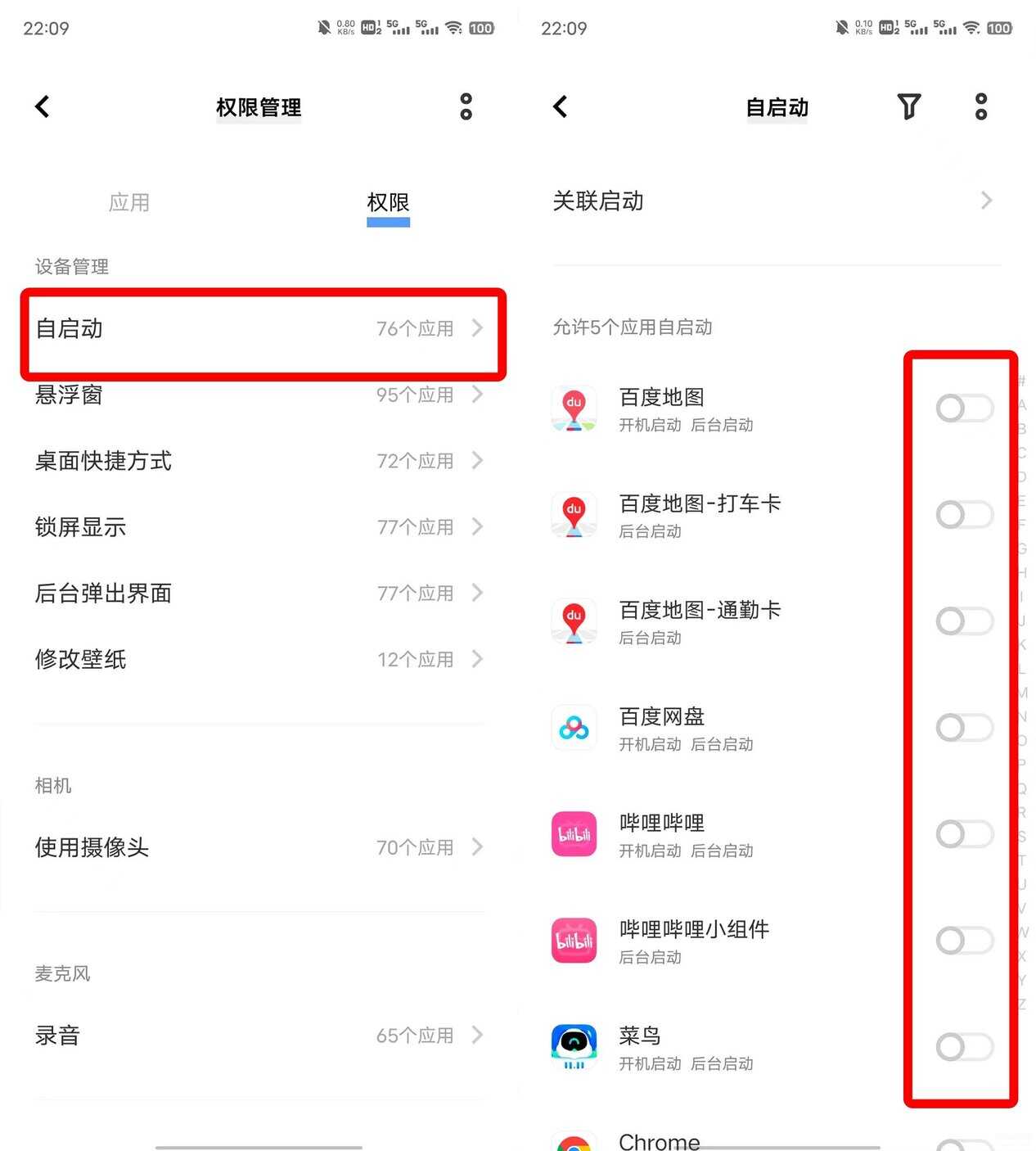 方法一:关闭自启动和关联启动权限