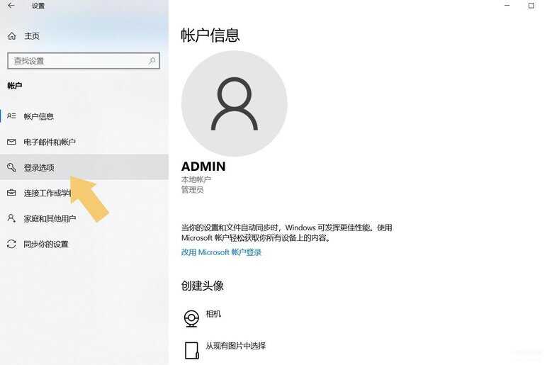 找到“帐户”选项后,点击打开它,在弹出的界面里找到“登录选项”。如下图: