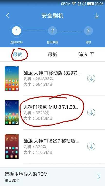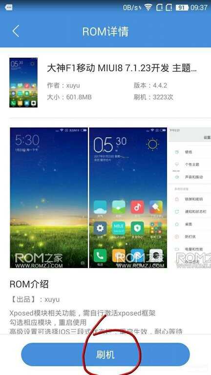 3.软件自动识别机型,大神,我选的是最赞-大神F1移动MIUI8开发版