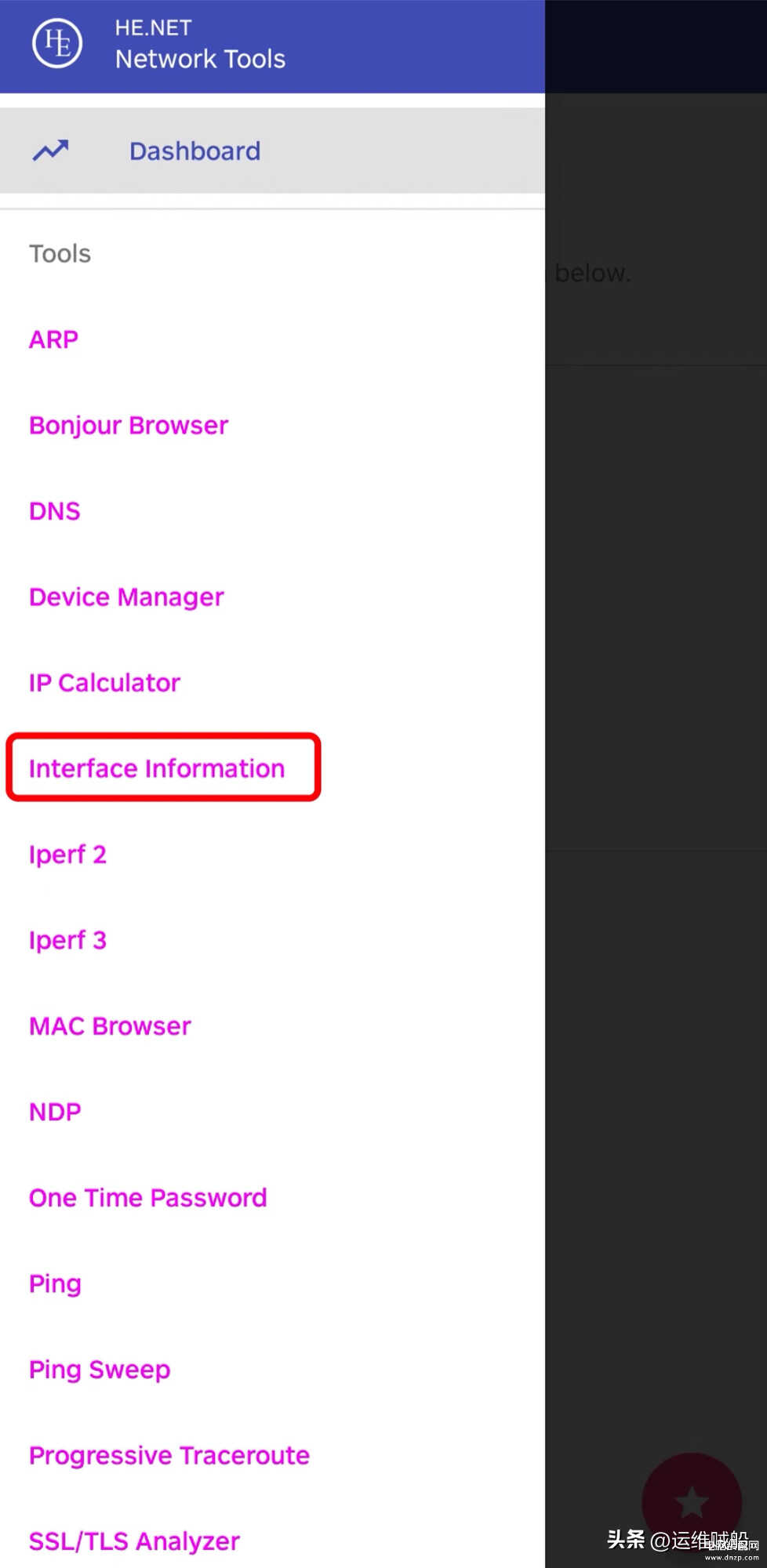 在服务端上展开左上角的菜单,点击"Interface Information"。