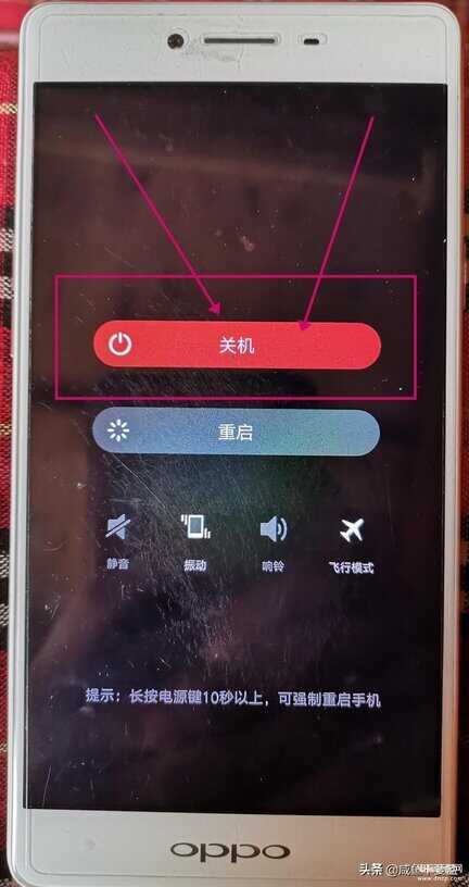 步骤1.长按住手机“电源键”直到出现“关机”选项界面,松开手机“电源键”。