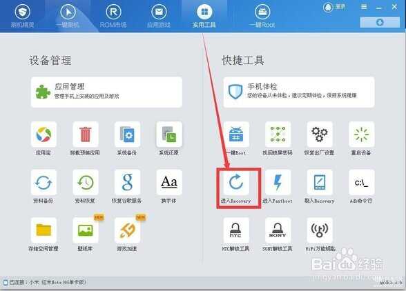 3.第三步连接成功之后我们点击实用工具箱如图所示。进入工具箱之后,我们点击进入recovery选项