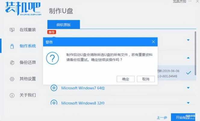 3、这里要注意,u盘制作启动盘时会被格式化,我们需要确保里面没有重要数据再点击确定。