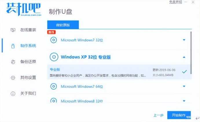 2、接着再选择我们要安装的系统版本,选择完毕后点击开始制作。