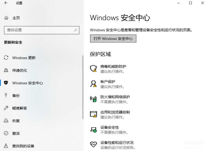 5、在这个界面点击打开病毒和威胁防护的选项。