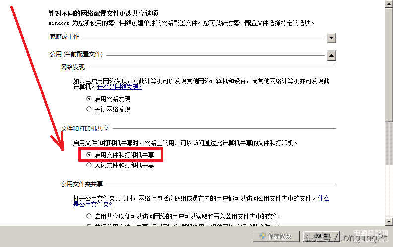 在列表中找到【文件和打印机共享】,并勾选【启用文件和打印机共享】,接着往下拉到底,找到【密码保护共享】,并勾选【关闭密码保护共享】,这两个参数是向其他电脑开放共享权限,及不需要密码即可共享。