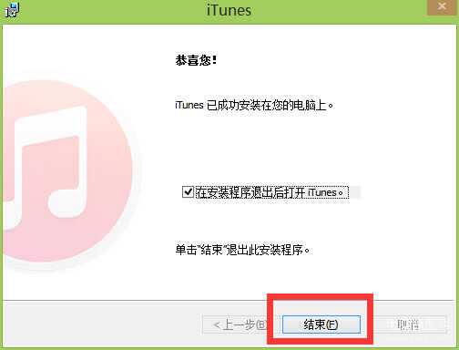 下载完成后直接双击打开,进行安装,安装完毕直接点击结束,将自动打开iTunes