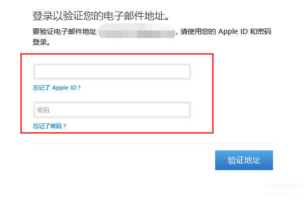 再次输入个人Apple ID以及密码,点击验证地址,再次验证Apple ID所注册的邮箱地址