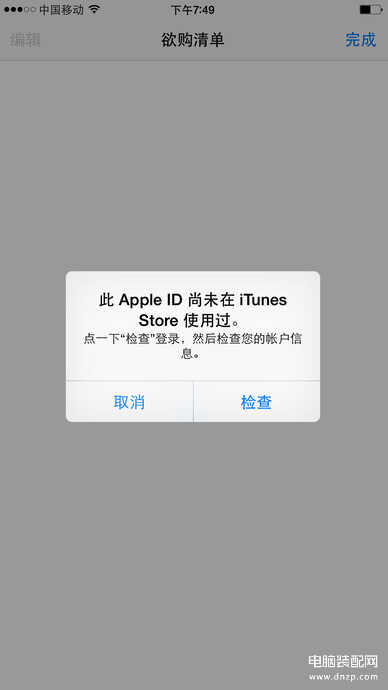 这时,系统依然显示“此Apple ID尚未在iTunes Store使用过”,不用担心,现在我们可以直接点击检查按钮