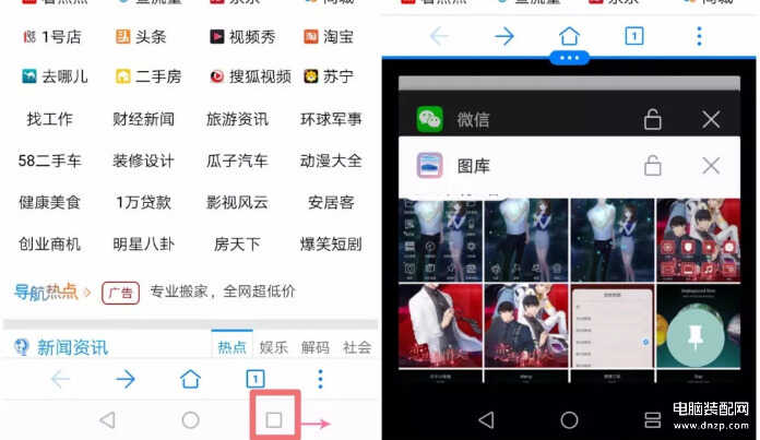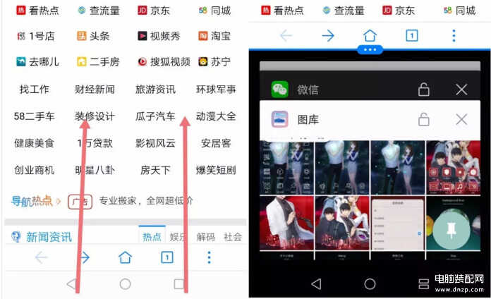 相信这个分屏方法是大家最常用,我就不多做介绍了,在要分屏的页面,常按多任务键,便可以呼出分屏界面。