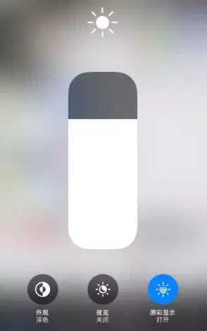 上划呼出「控制中心」(iPhone X 及更新机型从右上角向下划动),长按亮度滑块,轻触左侧按钮可以切换「浅色」或「深色」外观。