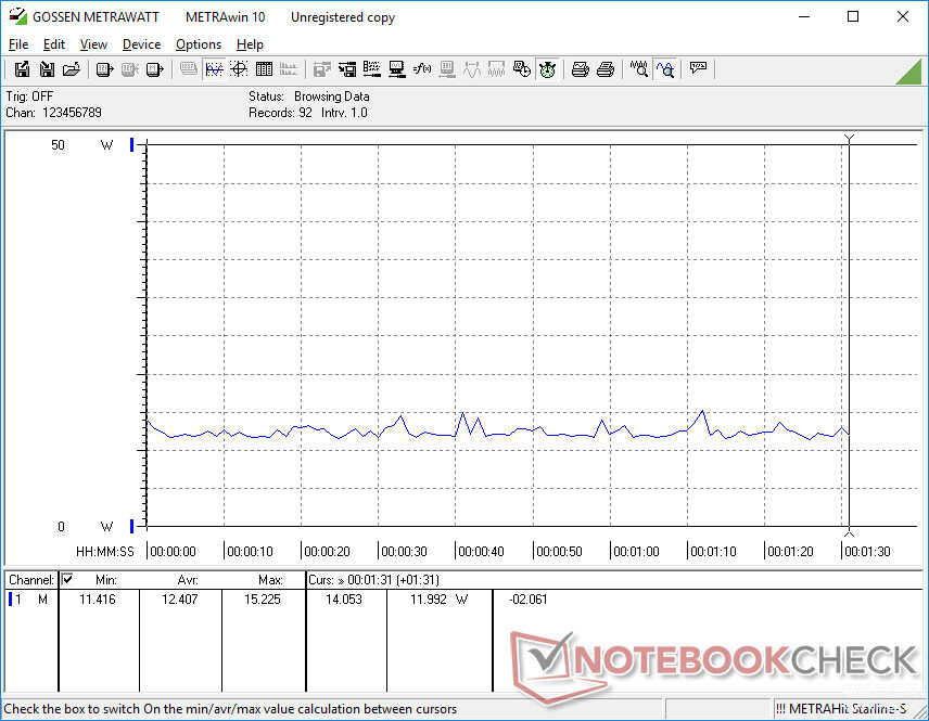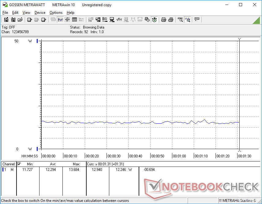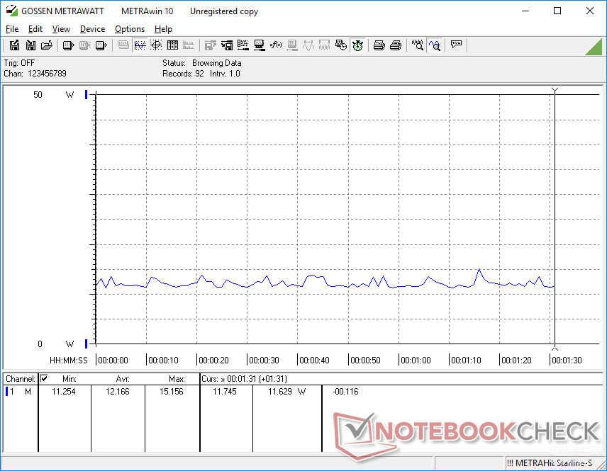 ㊦:Blade OLED最低亮度下,显示浅色网页,功耗为12.29W