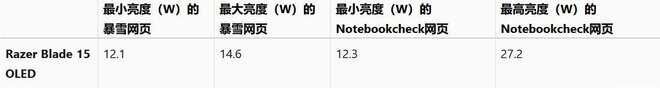 Blade OLED不同亮度,深色/浅色网页下的功耗表现: