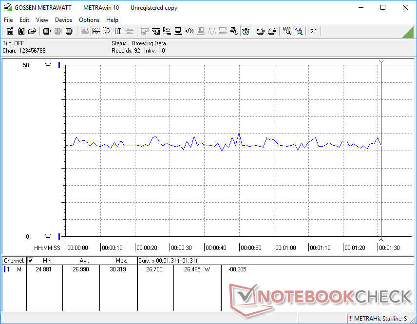 ㊦:Blade OLED最高亮度下,显示浅色网页,功耗为27.18W
