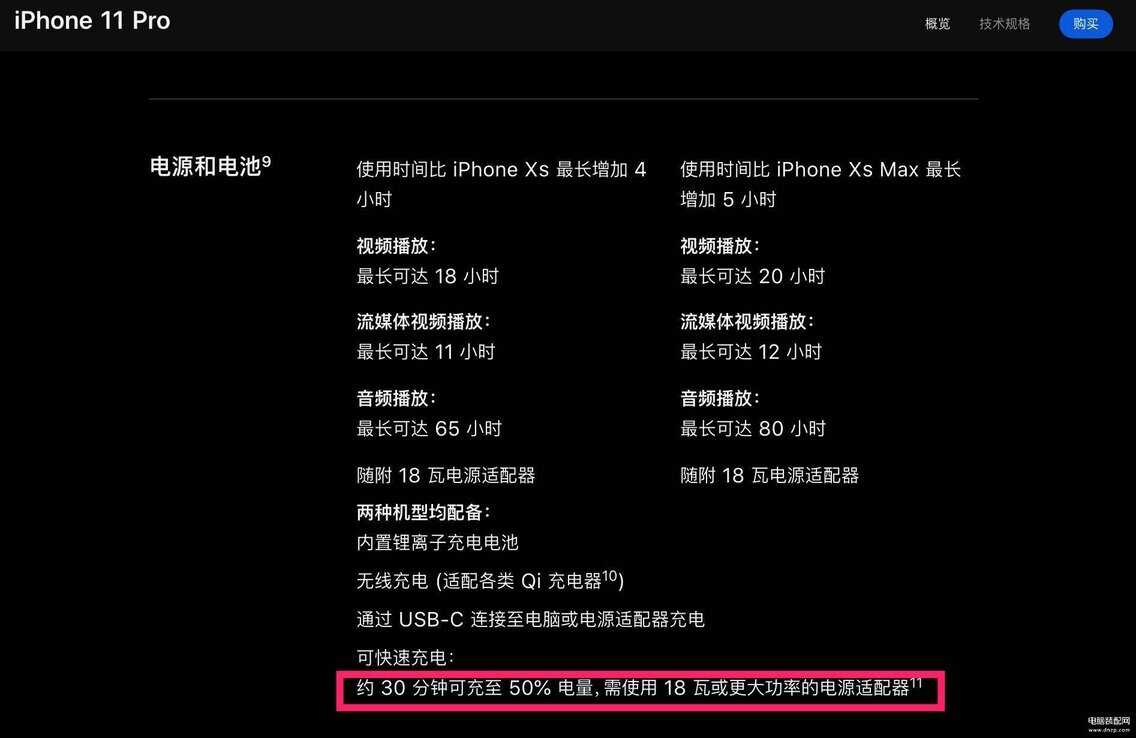 近日苹果发布的iPhone 11 Pro新机终于告别了万年的“五伏一安”,配备了18W电源适配器。而且电量也有增加,据工信部入网资料显示,iPhone11 Pro的电池容量为3190mAh,iPhone 11 Pro Max的电池容量3969 mAh;并且官方介绍两款手机的使用时间也明显增加,iPhone 11 Pro的使用时间比 iPhone XS 最长增加 4 小时,iPhone 11 Pro Max的使用时间比 iPhone XS Max 最长增加 5 小时。
