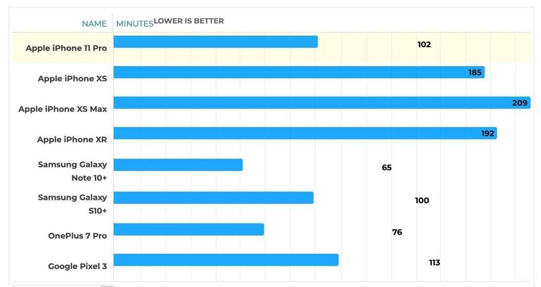 最后,外媒也总结了iPhone 11 Pro系列与 苹果其他系列手机,以及其他品牌手机的充电时间对比。