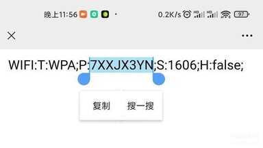 步骤6、查看WIFI密码,扫描结果中,我们只需要关注P:开始,到分号结束之间的那一部分,就是密码了,(p就是password即密码的简称)。