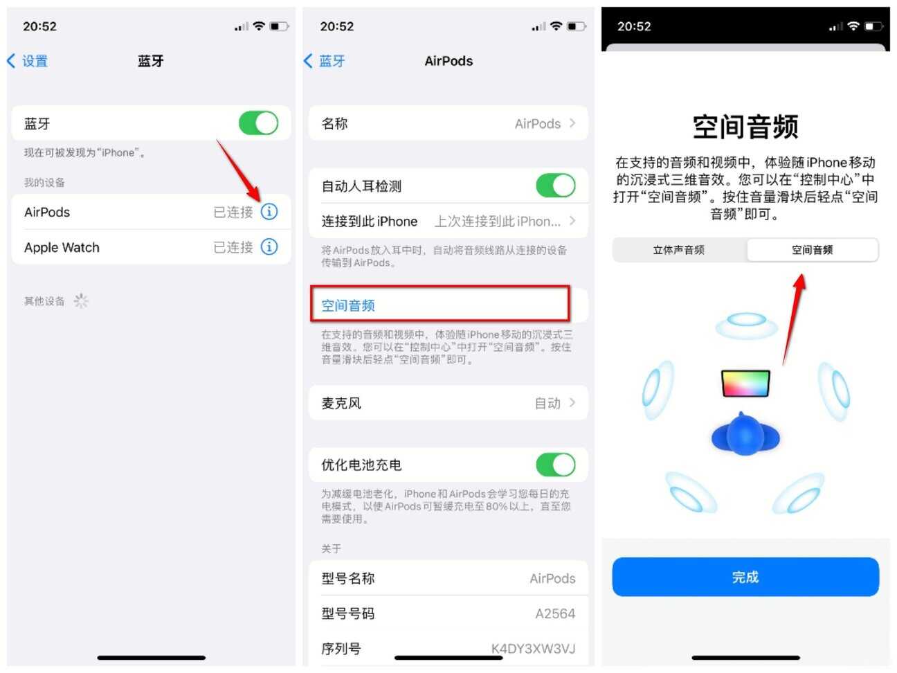 AirPods3是支持音频空间的,所谓空间音频,就是在支持的音频和视频中,体验随iphone移动的沉浸式三维音效。