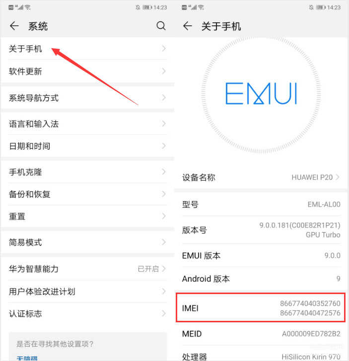 进入【设置】→【系统】→【关于手机】,我们也可以看到设备的IMEI码。