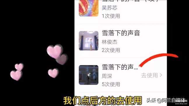 我们选择一个喜欢的版本,然后点开,我们先试听一下,如果说喜欢这个曲目的话,我们点后方的“去使用”,把下方的“设置铃音”点开,再点下方的“设置”,再返回新消息通知的页面,我们的来电铃音就设为“雪落下的声音”啦,是我们喜欢的音乐!当别人给我们打视频电话的时候,我们就能听到这首喜欢的音乐,当然别人也是可以听到的。