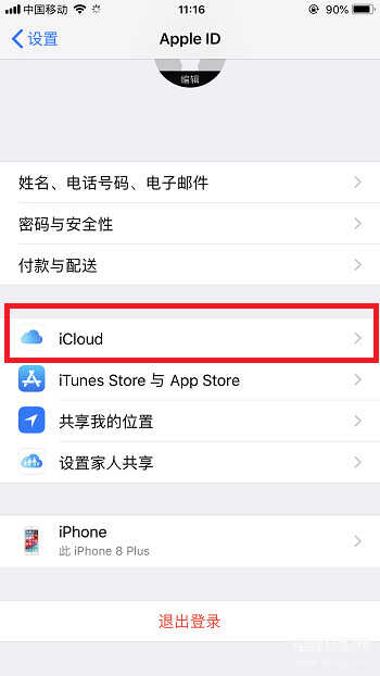 2. AppleID的选项页面进来后,从中选择【iCloud】的选项;