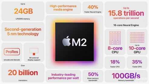 首先,M2 比 M1 多 25% 的晶体管,CPU 速度提高 18%,GPU 速度提高 35%。