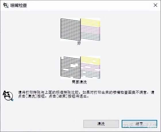 发现喷头堵塞,点击清洗按钮即可,如果常规清洗不能解决问题,请使用大墨量清洗,多次清洗无效请更换喷头,并使用原装耗材。