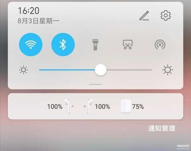 更细节的是,当你下拉手机状态栏时,也能够看到耳机充电盒和耳机的实时电量,方便大家及时给耳机充电。这样大家平时使用耳机的时候就不用专门再打开一次耳机充电盒才能看到电量,这个设计小黑疯狂点赞!