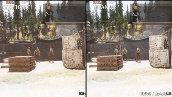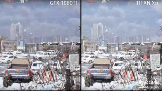 首先我们先来进行下游戏的评测。在全境封锁这款游戏里我们能够看到,在相同的画面下,帧数相差不大,但在画质中,我们可以感觉TITAN Xp 4K更加的清晰一些。