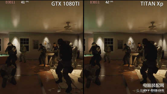 我们在来看下竞技类游戏。我们都知道,这类游戏对着显卡更是拥有着极致的要求,在图中我们可以看到,帧数是相差不多的,但是在游戏体验中GTX 1080 Ti则更胜一筹。