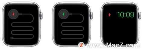 使用充电线将Apple Watch连接到电源后,您应该会在屏幕上看到一个绿色闪电图标。
