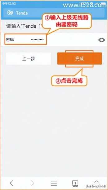 在浏览器中输入上级路由器密码,点击完成。如下图: