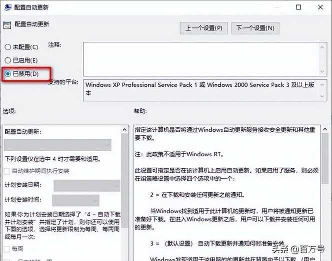 3、然后在右侧“配置自动更新”设置中,将其设置为“已禁用”并点击下方的“应用”然后“确定”,如图所示。