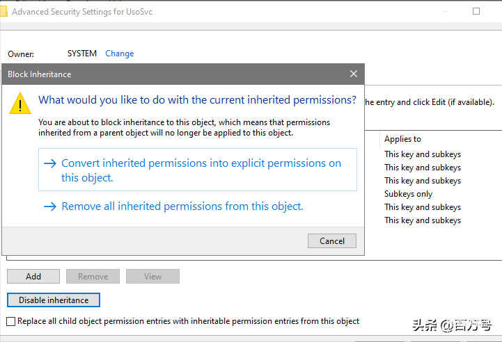 9、将以上设置应用到 HKEY_LOCAL_MACHINE\SYSTEM\CurrentControlSet\Services\WaaSMedicSvc。