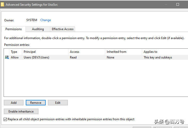 8、选择替换所有子对象权限;删除所有权限,仅保留users,权限为只读,点击确认。
