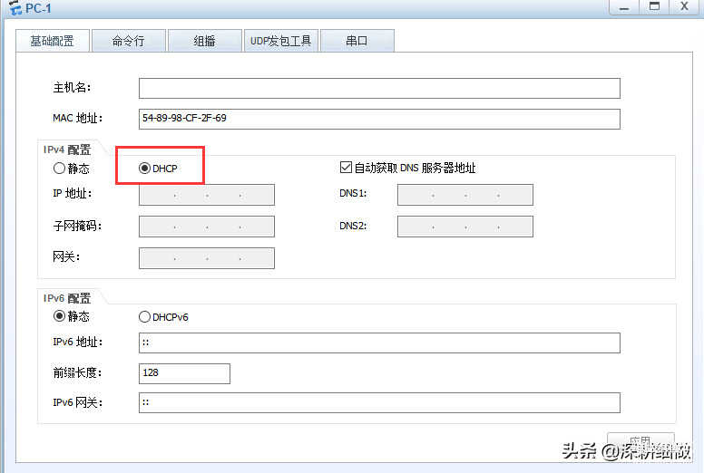 接下来打开PC1,选择DHCP