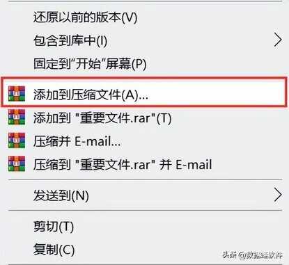 - 鼠标右键点击要加密的文件夹,选择“添加到压缩文件”;