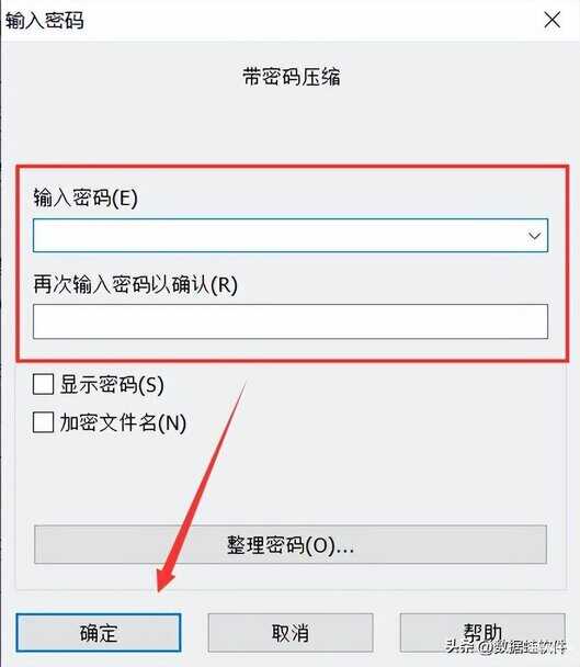 3. 在弹出的窗口输入你要设置的密码,并再次输入密码以确认,最后选择“确定”。设置好后,你就会看到一个加密并压缩的文件夹,可以双击打开,把压缩包解压出来就可以了。