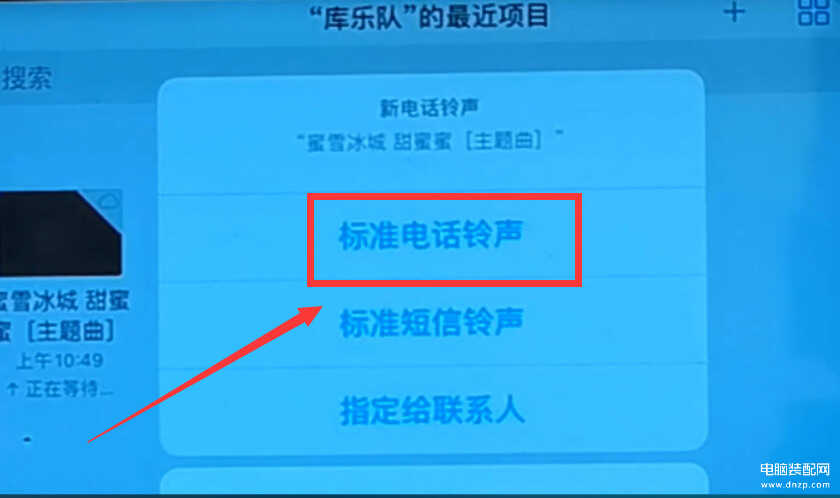 在这个界面,我们点击“标准电话铃声”。到这里,我们就把这首《蜜雪冰城甜蜜蜜》设置成了手机的电话铃声了。我们可以打开手机的设置。