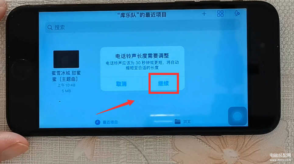 这里我们点击“电话铃声”按钮,会弹出一个“电话铃声长度需要调整”的窗口,可能是歌曲的时间太长了,需要我们调整歌曲的长度。
