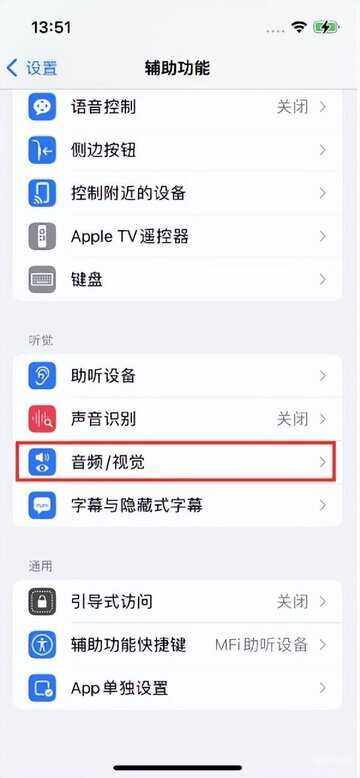 进入“设置”-“辅助功能”-“音频/视觉”;