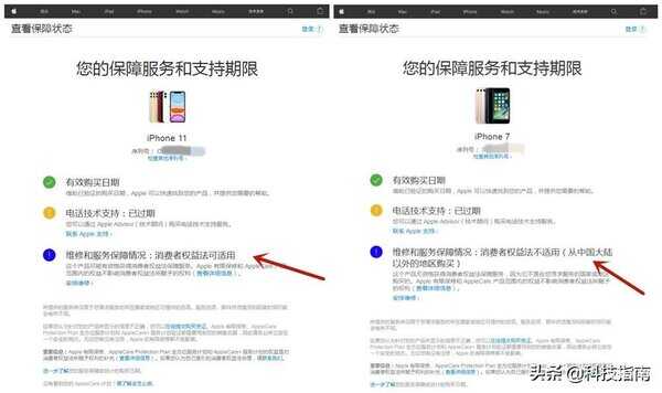 在官网输入序列号之后,主要通过第三选项“维修和服务保障情况”来判定,显示“消费者权益法可适用”就是国行正版。反之,就不是国行正版了。
