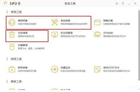 2、 点击“安全工具”进入系统工具界面,我们要进行系统修复操作