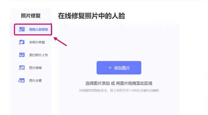 老照片修复→模糊人脸修复→上传图片(注意尺寸不要超过限制)→自动修复