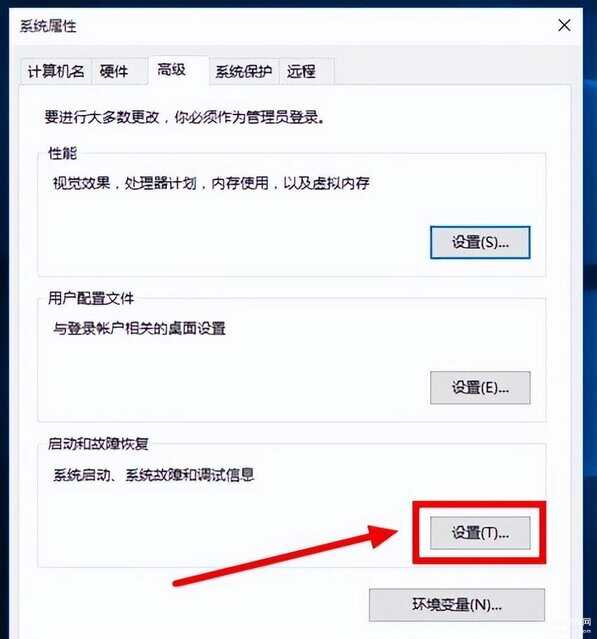 4、选择启动和故障恢复分类下的“设置”左击。如图所示: