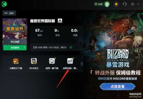 二. 完成加速后,在加速界面点开战网切换:国服/外服。在其中完成战网亚服的一键切换。